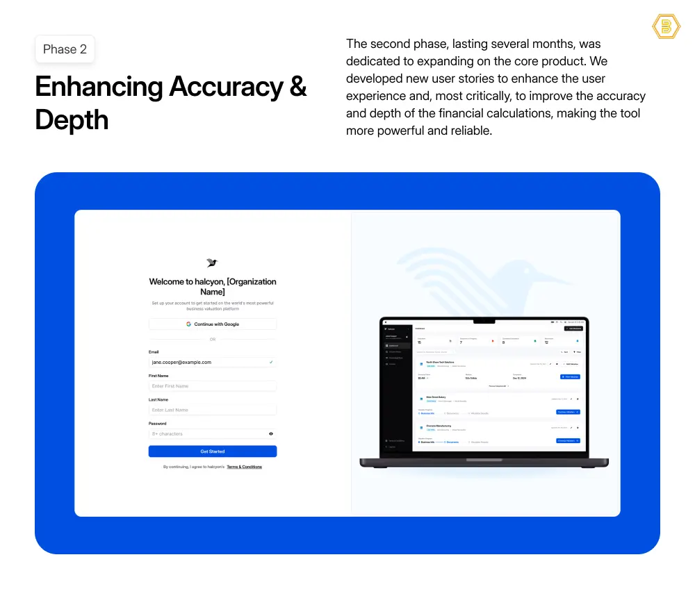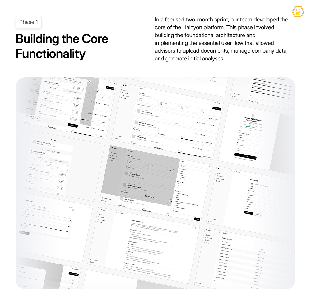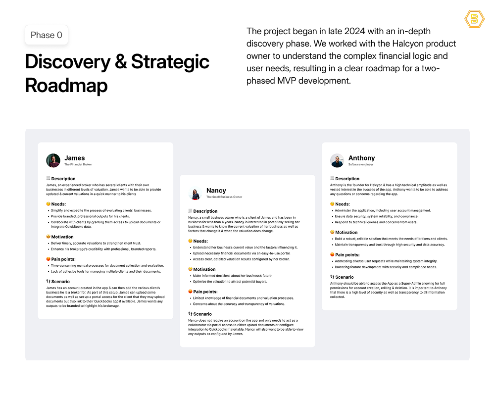 Our strategy focused on “Balancing Speed with Structure”. The project began with a deep “Discovery & Strategic Roadmap” phase , where we collaborated with the Halcyon product team to understand the complex “financial logic and user needs” . This resulted in a clear strategic plan for “phased MVP development”.